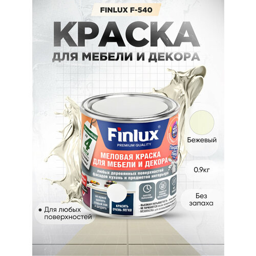 Краска для мебели и декора любых деревянных поверхностей, кухонь и предметов интерьера Finlux F-540-Бежевый-0,9 кг