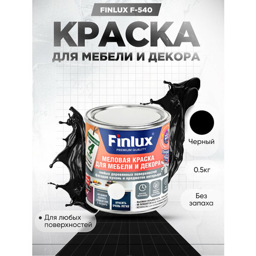 Краска для мебели и декора любых деревянных поверхностей, кухонь и предметов интерьера Finlux F-540-Черный-0,5 кг