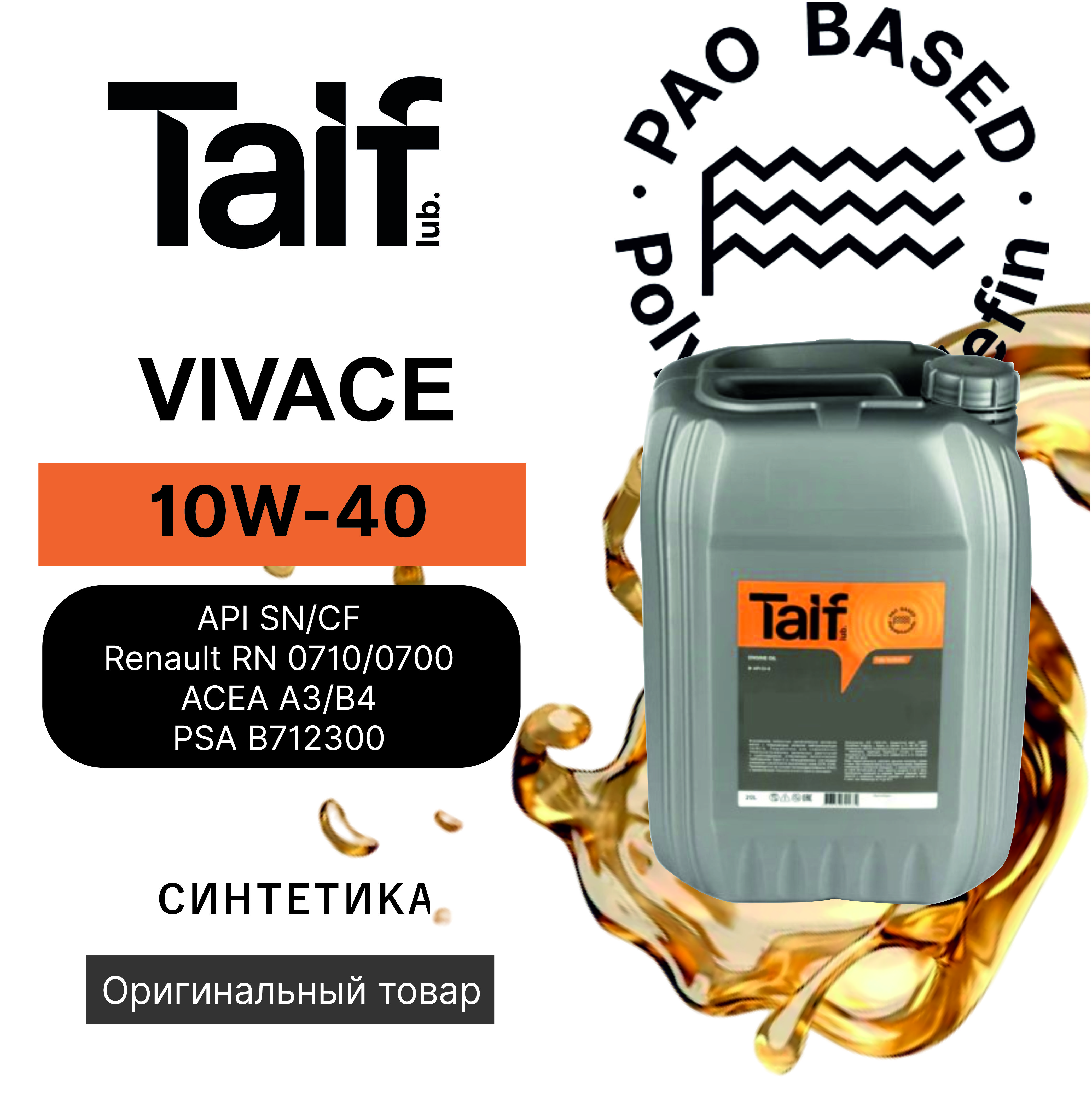 Моторное масло TAIF VIVACE 10W40 20л