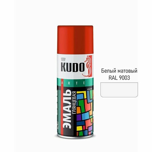 Эмаль универсальная 1101 KUDO Белая (матовая) (520 мл) - Высококачественная быстросохнущая алкидная эмаль, отколерованная в соответствии с европейским стандартом RAL, предназначена для окраски предварительно загрунтованных металлических и деревянных поверхностей. Применяется для наружных и внутренних работ. Легко наносится на труднодоступные места, имеет хорошую укрывистость. Покрытие обладает превосходной адгезией к окрашиваемой поверхности, высоким глянцем, хорошей сопротивляемостью к удару, изгибу и другим механическим воздействиям. Эмаль обеспечивает надежную защиту окрашиваемых поверхностей, высокую атмосферостойкость и прочность, длительный срок эксплуатации.