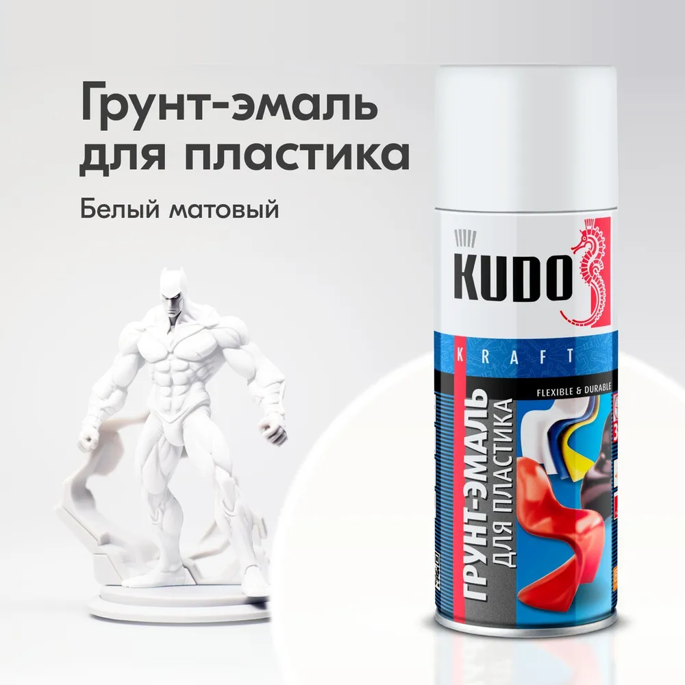 Грунт-эмаль Kudo для пластика, быстросохнущая, акриловая, матовая, белая, 520 мл