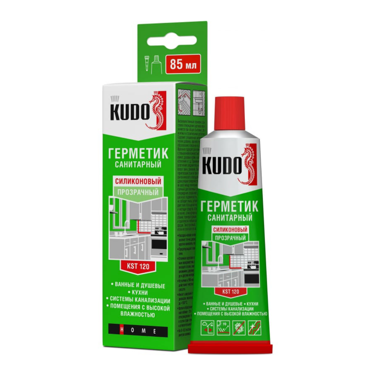Герметик силиконовый санитарный KST-120 прозрачный 85 мл, Kudo