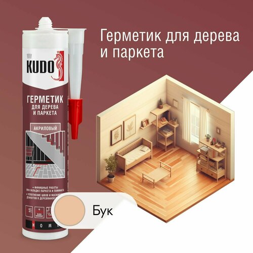 Герметик акриловый KUDO "KSK 314" для дерева и паркета, 280 мл, Бук