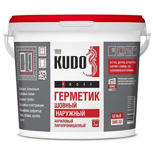 Герметик акриловый паропроницаемый шовный Kudo Proff SMS-351, наружный, 7 кг, белый