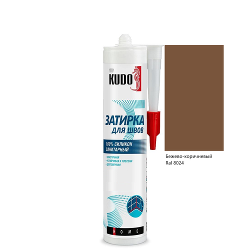 Герметик-затирка силиконовый Kudo Home KSK-160, санитарный, бежево-коричневый, 280 мл