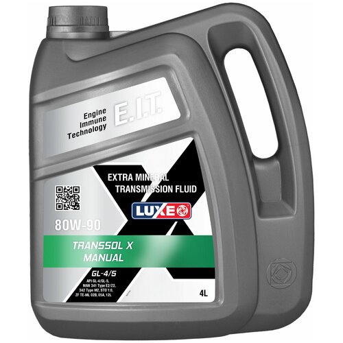 Масло трансмиссионное LUXE TRANSSOL X 80w-90 GL-4/5 4л - Всесезонное трансмиссионное масло для коробок передач, дифференциалов и трансмиссионных механизмов. Благодаря способности выдерживать большие нагрузки, обеспечивает высокую производительность трансмиссии. Свойства: Высокая термическая стабильность Превосходная защита от ржавчины и коррозии Отличные противозадирные свойства Стабильно высокий индекс вязкости Высокая устойчивость к окислению Стандарт качества: API GL-4/GL-5, MAN 341 Type E2/Z2, 342 Type M2, STO 1:0, ZF TE-ML 02B, 05A, 12L, 12M, 16B, 17H, 19B, 21A
