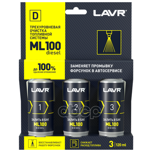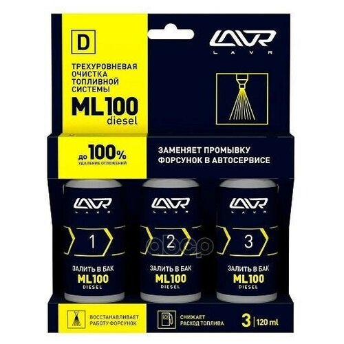 ![]() | 930 ₽ | 26.12.2023 Очиститель Трехуровневый 3х120мл Топл. Сист.(Дизель) LAVR арт. LN2138 | |