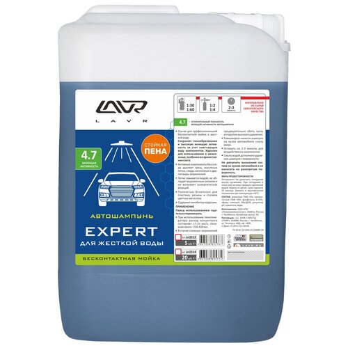 LAVR LN2312 _автошампунь! для бесконтактной мойки, Еxpert, для жесткой воды, 4.7 (1:50-1:70), 5,7 кг\