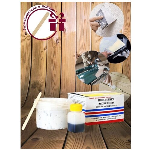 Предназначения для устранение трещин, неровностей и других повреждений поверхностей металлов, бетона, сплавов, керамики и других материалов. Имеет свойство быстро отвердевать, устойчива к влаге и к различным механическим воздействиям. Предотвращает появлений коррозий. В комплекте: ёмкость с эпоксидным составом, пластиковая ёмкость с отвердителем.