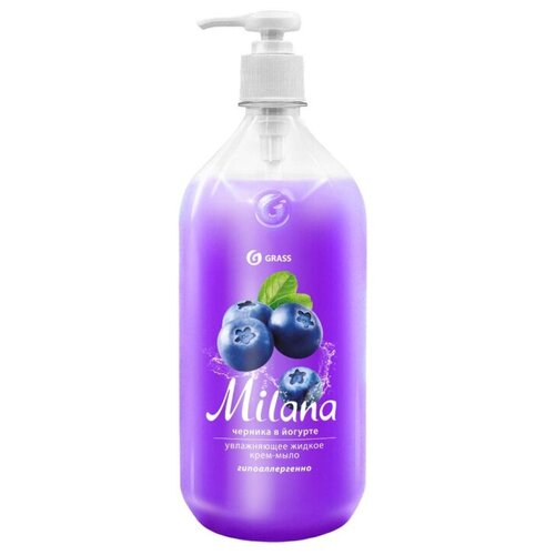 Мыло-крем жидкое GRASS 1 л MILANA "Черника в йогурте", дозатор (126301)