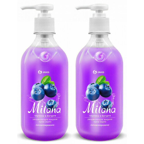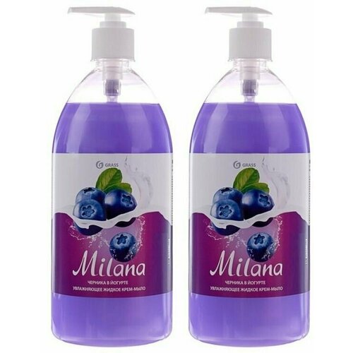 Grass Крем-мыло жидкое Milana, Черника в йогурте, увлажняющее, 1000 мл, 2 штуки/