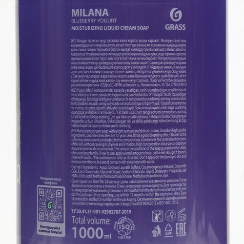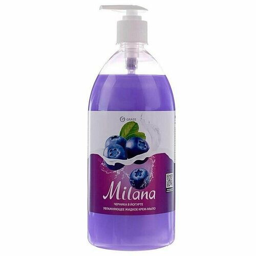 Мыло Жидкое 1Л - Увлажняющее Крем-Мыло Milana Черника В Йогурте, Флакон С Дозатором GraSS арт. 126301