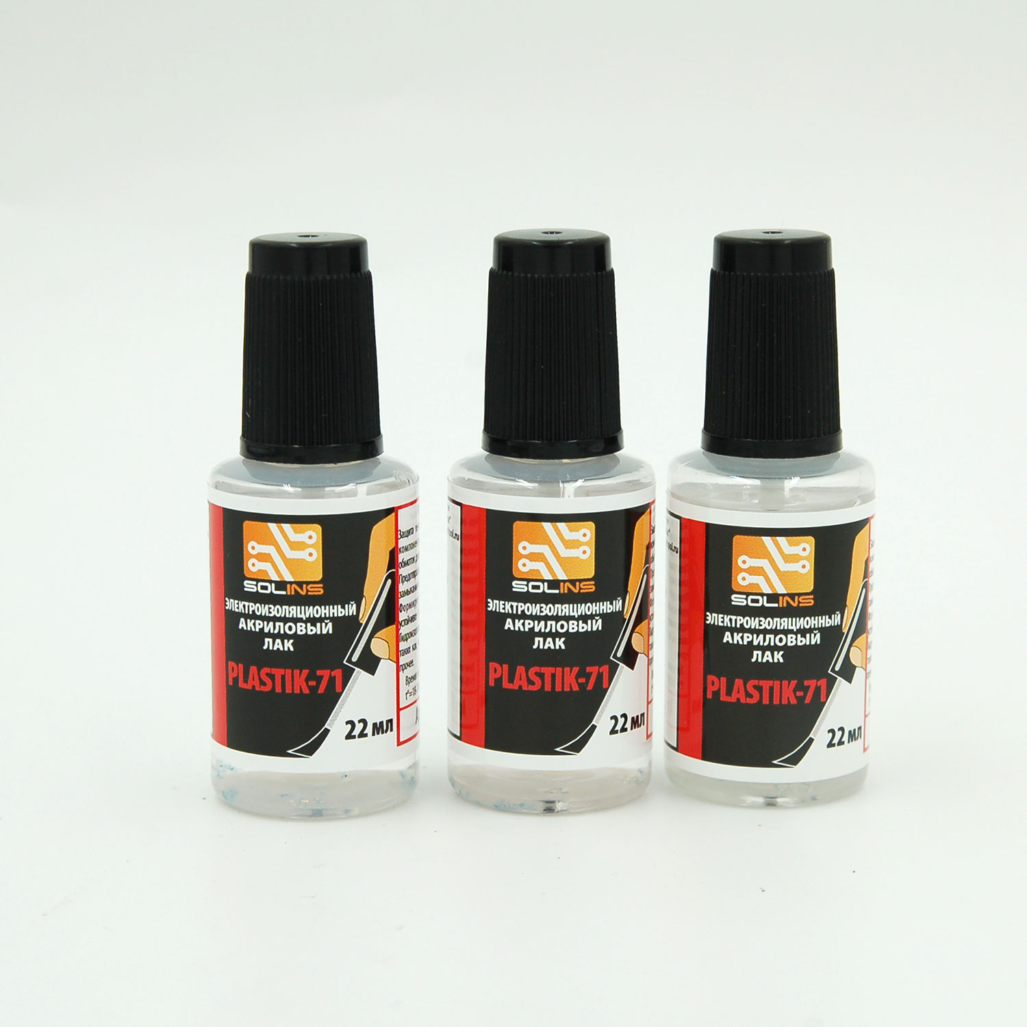 Лак Solins PLASTIK-71 акриловый изоляционный для печатных плат флакон (22 мл) 3 штуки
