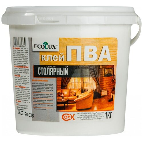 Клей ПВА ECOLUX столярный 1 кг (комплект из 3 шт)Столярный клей ПВА ECOLUX рекомендуется для быстрого склеивания изделий из дерева, не подвергающихся тяжелым механических нагрузкам, изделий бумаги, картона, кожи, ткани, стекла, керамической плитки, для приклеивания стеклообоев, линолеума и других материаловСпособствует повышению эластичности и прочности бетонных, штукатурных и шпатлёвочных поверхностейКлей в разбавленном состоянии может использоваться в качестве грунтовки и пропитки пористых поверхностейПосле высыхания образует прозрачную плёнку, не оставляет следовКлеевой шов устойчив к воздействию времени, не токсичен и не огнеопасенЦвет: БелыйОснова клея: ПВА (поливинилацетат)Склеиваемые материалы: Дерево, бумага, картон, кожа, ткань, стекло, керамическая плитка, стеклообои, линолеум-Вес: 1052 г.-Фасовка: 1 шт-Тип индивидуальной упаковки: Без упаковки-Длина упаковки: 14-Высота упаковки: 12.5-Ширина упаковки: 14-Объем упаковки: 2.450-Объем продукта: 3.0833-Объем бокса: 37-Материал: См. на упаковке-Вес, кг/Объём, л: 1-Назначение клея: Для дерева-Температурное ограничение: Нет