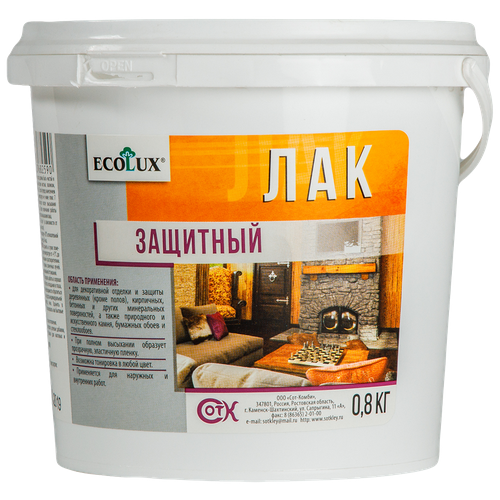 Лак строительный защитный декоративный для отделки деревянных бетонных поверхностей Ecolux, 800 мл