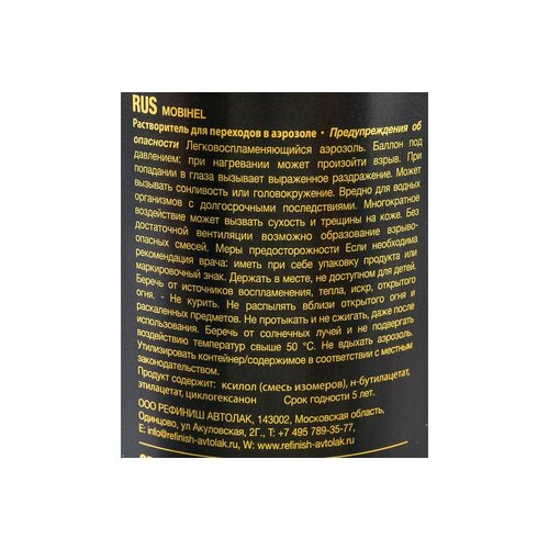 Mobihel Аэрозоль растворитель для переходов 520 мл 41984220A. Объем: 0.52л. Вид упаковки: спрей/аэрозоль. Вес нетто: 0.35кг. Назначение: для ухода за кузовом.