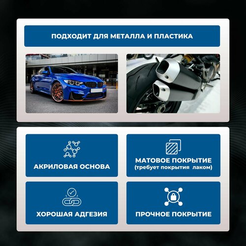 Высококачественная акриловая автоэмаль с металлическим и перламутровым эффектом применяется в качестве базового слоя при ремонтной покраске деталей автомобилей. После высыхания эмаль образует матовую пленку с металлическим блеском. Для получения глянцевого покрытия рекомендуется нанести несколько слоёв AUTON «Лак акриловый».