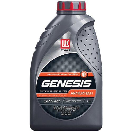 Моторное масло LUKOIL Genesis Armortech 5W-40 - всесезонное, полностью синтетическое масло последнего поколения. Имеет применение для бензиновых и дизельных двигателей легковых автомобилей, легких грузовых и спортивных автомобилей любого класса, в том числе оборудованных турбонаддувом. Передовая технология Dura Max обеспечивает всестороннюю защиту двигателя от всех негативных воздействий, связанных с характером движения, качеством дорог и окружающей среды.Моторное масло LUKOIL Genesis Armortech 5W-40 вымывает все смолистые отложения в двигателе. Обеспечивает работу без потерь в условиях городской ситуации на дорогах, в режиме движения «стоп-старт». Имеет специальную рецептуру, разработанную для минимального расходования масла на угар.