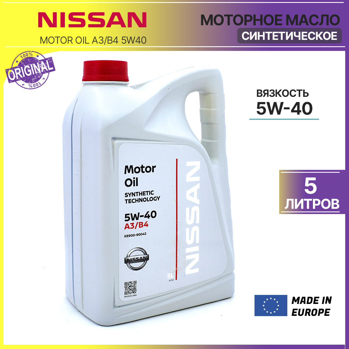 Моторное масло Nissan A3/B4 5W40 5 литров оригинальное KE90090042