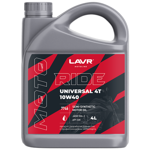 Моторное масло LAVR MOTO RIDE UNIVERSAL 4Т 10W40 SM, 4 л Ln7746