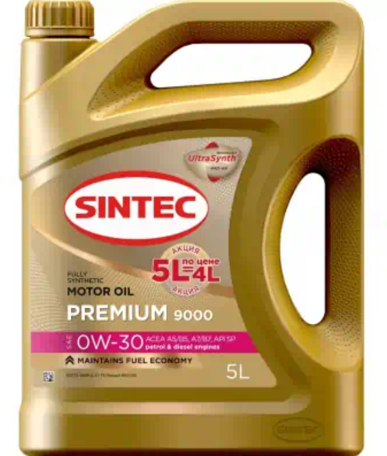Моторное масло SINTEC синтетическое Premium 0w30 9000 A5/B5 SP 5л
