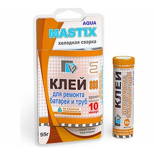 Холодная сварка MASTIX для батарей и труб, 55 г (2 шт). Холодная сварка MASTIX предназначена для быстрого и надежного склеивания, ремонта деталей и узлов, герметизации соединений и емкостей, для восстановления утраченных фрагментов изделий из керамики и фарфора, а также из цветных и черных металлов, пластмасс, дерева в различных комбинациях. Температура эксплуатации отремонтированных изделий от -60ºС до +150ºС. Обеспечивает надёжный ремонт на влажных и замасленных поверхностях, при низких (до -10°С) температурах (при условии замешивания смеси в теплом помещении).(9619288-2p)