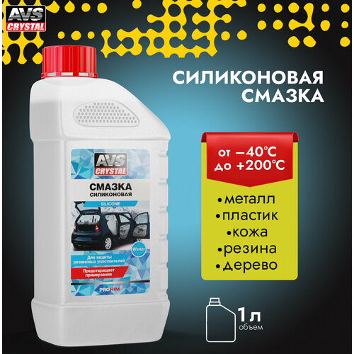 Смазка силиконовая 1 л AVS AVK-720Смазка силиконовая для защиты резиновых уплотнителей. Предотвращает примерзание.Тип: флягаОбъем: 1 лСмазка силиконовая для защиты резиновых уплотнителей. Предотвращает примерзание.Тип: флягаОбъем: 1 лПредназначена для защиты резиновых деталей и уплотнителей от естественного старения, и воздействия температур. Образует на обрабатываемых поверхностях полимерный слой, обладающий водоотталкивающими и смазывающими свойствами. Предотвращает примерзание и растрескивание. Подходит для применения на станциях технического обслуживания, в гаражах, мастерских, на производстве и в быту.Способ применения: Нанести средство при помощи губки на предварительно очищенную поверхность и равномерно распределить состав по поверхности. При необходимости повторить процедуру.Меры предосторожности: Избегать попадания в глаза. При попадании тщательно промыть водой, при необходимости обратиться за медицинской помощью. Использовать по назначению. Беречь от детей.Условия транспортировки и хранения: Хранить в сухом, хорошо проветриваемом помещении, на расстоянии не менее 1 м от нагревательных приборов, при температуре от +0°С до +35°С. Избегать попадания прямых солнечных лучей. Хранить в плотно закрытой таре.Тип: флягаОбъем: 1 лСиликоновые полимеры.