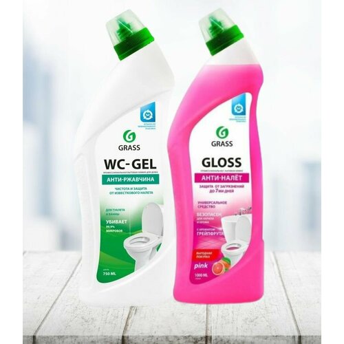 GRASS Чистящее средство Grass Gloss Pink,"Анти-налет", гель, для ванной комнаты, туалета, 750 мл