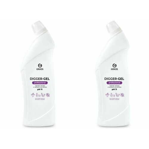 Grass Средство щелочное для прочистки канализационных труб "Digger-gel" Professional, 1000 мл, 2 шт