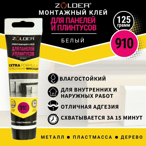Клей монтажный ZOLDER ZN-910 для панелей и плинтусов, белый, 125г