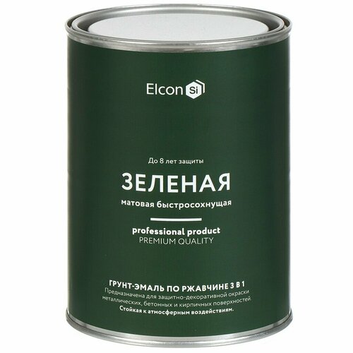 Грунт - эмаль по ржавчине Elcon 3 в 1 матовая, зеленая, 0.8 кг 00-00462299