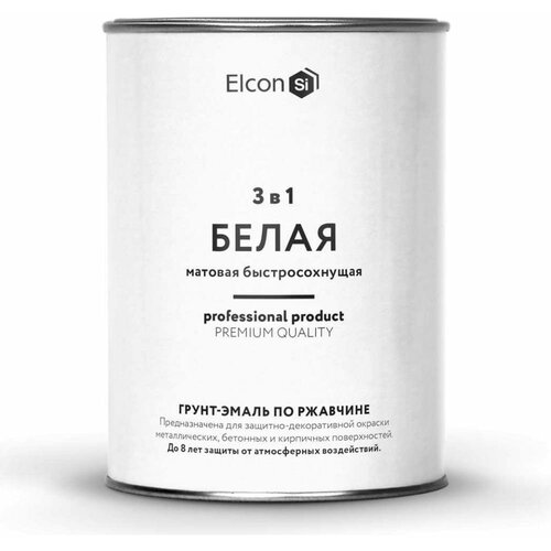 Грунт - эмаль по ржавчине Elcon 3 в 1 матовая, белая, 0.8 кг 00-00462295 предназначена для нанесения как на чистые, так и на пораженные коррозией металлические поверхности с целью создания надежной антикоррозионной защиты металлоконструкций, оборудования, металлических изделий. Компоненты, входящие в состав, преобразуют ржавчину в прочный защитный слой, препятствуют дальнейшей коррозии и образуют на поверхности металла прочное атмосферостойкое покрытие. Продукт может наноситься при отрицательных температурах до -20 градусов, время сушки "на отлип" при температуре +20 градусов составляет не более 1 часа.