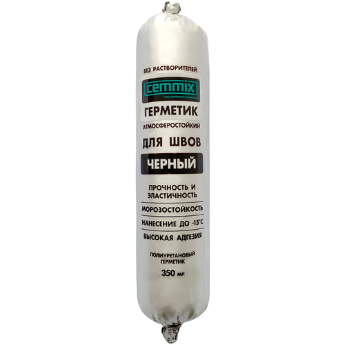 Клей-герметик для швов Cemmix – однокомпонентный высокомодульный полиуретановый герметик, подходит для герметизации швов из различных материалов шириной до 20 мм, в том числе подвергающихся постоянному воздействию воды и вибрации. Обеспечивает надёжное скрепление деталей из черепицы, кирпича, металла, дерева и других материалов. Атмосферостойкий. Работы по нанесению герметика можно выполнять при отрицательных температурах.
