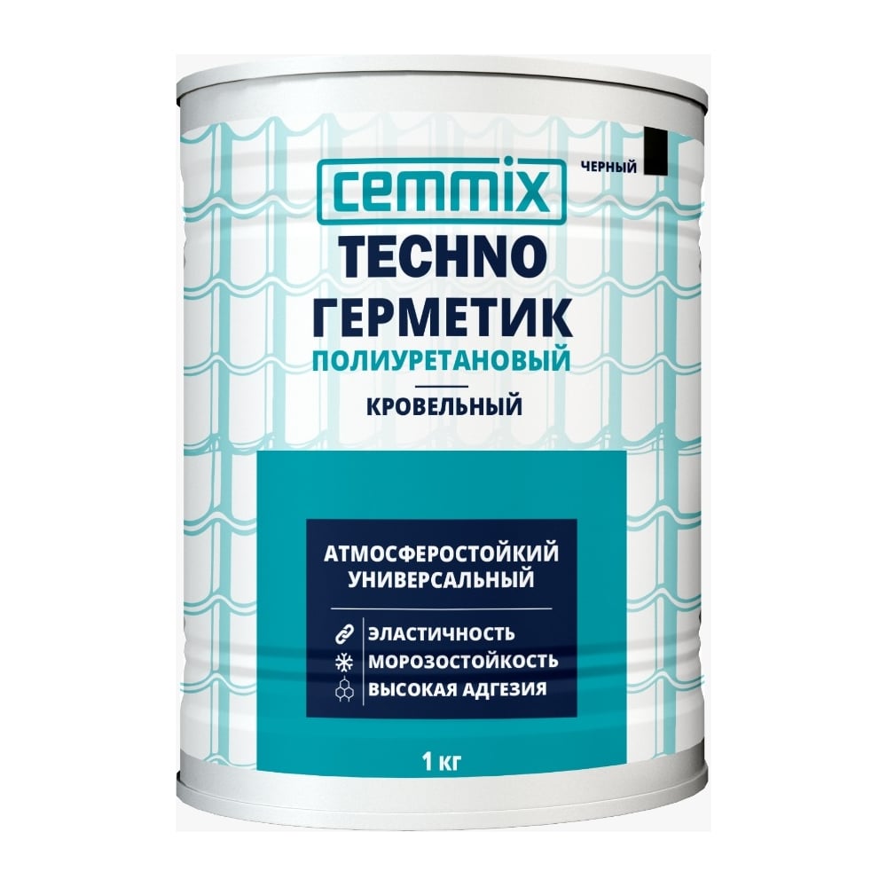 Герметик полиуретановый CEMMIX "Кровельный", банка 1 кг, цвет черный 85498735 - герметик для ремонта и устройства любых типов кровли. Обладает высокой адгезия к большинству материалов включая битумные, является безусадочным, эластичным и атмосферостойким. Остается эластичным при отрицательных температурах. Полиуретановая основа.Применение. Заполнение, уплотнение, гидроизоляция и защита швов, примыканий, нахлестов, ремонт трещин и повреждений кровли, требующей эластичных ремонтных материалов.Подготовка основания. Очистить поверхность от жиров, масел, грязи, пыли и остатков после прежних герметиков и похожих загрязнений. Поверхность должна быть сухой и чистой (исключить нанесение на мокрые поверхности), для улучшения адгезии на пористых основаниях, необходимо применять полиуретановый праймер.Нанесение необходимо производить при температурах от +5°С до +30°С.Инструменты нанесения - кисть, шпатель. Герметик накладывать медленным, однообразным движением, тщательно заполняя щель. Рекомендуемая толщина нанесение герметика в один слой, до 3 мм, с увеличением толщины слоя, увеличивается время полной полимеризации. При необходимости, второй слой наносится после полимеризации первого слоя.Гарантийный срок хранения в ненарушенной заводской упаковке 12 месяцев