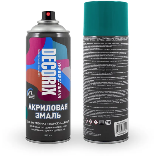 Высококачественная универсальная акриловая краска DECORIX используется в декоративно-оформительских работах, строительстве и ремонте. Предназначена для окрашивания: древесины, пластика, металла, бетона, кирпича, керамики, стекла, картона, минеральных поверхностей. Аэрозольная краска удобна для окрашивания небольших поверхностей и труднодоступных мест. Образует гладкое, устойчивое к выцветанию покрытие.