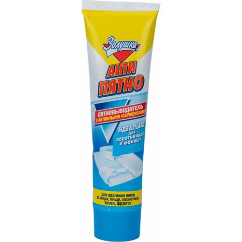 Мягкий пятновыводитель с желчным концентратом "Антипятно. Золушка".Средство эффективно удаляет перед стиркой пятна, в том числе и въевшиеся, от жира, пищи, косметики, крови, фруктов, травы.Идеально для воротничков и манжет.Способ применения: нанесите средство непосредственно на пятно или на загрязненное место (например, воротник рубашки) и оставьте на 5-10 минут. После этого постирайте изделие, как обычно
