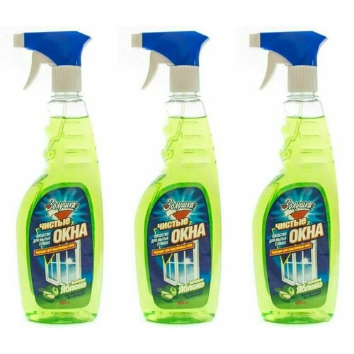 Золушка Средство для мытья стекол, Чистые окна, Зеленое яблоко, 500 мл, 3 шт