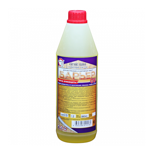 Огнебиозащита 1-й группы для древесины Барьер-ОБ, сосна (желтый), бутылка 1,2 кг