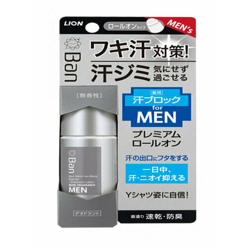 Lion Мужской роликовый дезодорант-антиперспирант Ban, ионный, блокирующий потоотделение, без запаха, 40 мл