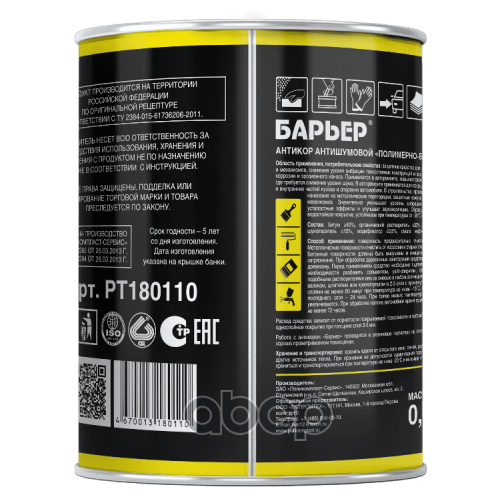 Мастика Антишумовая Барьер 0,9Кг Поликомпласт Рт180110 ПолиКомПласт арт. PT180110