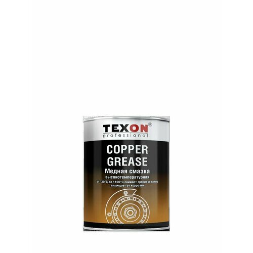 Медная смазка 1000 г TX183036 TEXON. Медная смазка 1000 г железная банка TX183036 TEXON. Работоспособность в диапазоне температур от -30 С до +1100 С. Медная смазка - это смазочное средство предназначено для бытового и промышленного применения. Смазка сохраняет свои свойства при экстремальных температурах от - 30 С до +1100 С. Применяется для обработки резьбы свечей зажигания, направляющих тормозных колодок, колесных болтов, крепежных и соединительных элементов системы выпускного тракта, а также других деталей и подвески, работающих при повышенных температурах и давлении. Медная смазка обладает высокими консервационными и гидрофобными свойствами - защищает механизмы, элементы соединения при эксплуатации в особых условиях под воздействием высоких температур, давления, влаги и пара. Обладает высокой адгезией к любому материалу (чугун, алюминий, бронза, сталь, латунь, никель). Предотвращает стирание резьбы. Предупреждает возникновение ржавчины, коррозии, заедания, прикипания, истирания и преждевременного износа. Фасовка в жестяной банке 1 кг: пастообразная консистенция изготовлена по оригинальной немецкой рецептуре экономична в использованиии идеально подходит для ремонта в автосервисах