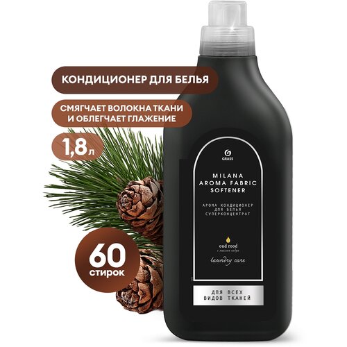 Кондиционер для белья концентрированный Grass Milana Oud rood, гипоаллергенный ополаскиватель для белья 1,8л