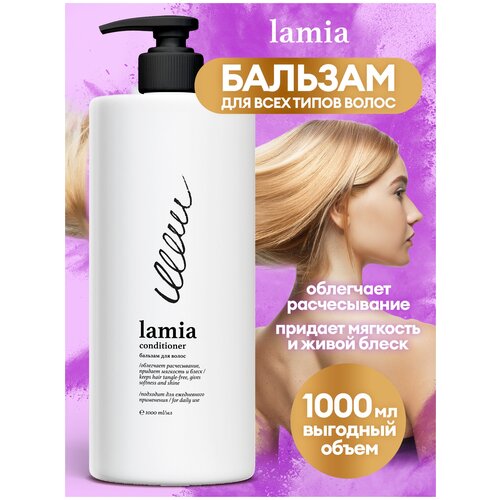 Кондиционер для волос Lamia 1000 мл -это эффективное средство по уходу за волосами-придает мягкость и живой блеск, облегчает расчесывание, делая волосы эластичными, мягкими и увлажненными. Бальзам для волос содержит витамин E, который интенсивно питает и придает здоровый блеск волосам, делая их гладкими и ухоженными. Бальзам-кондиционер легко смывается по всей длине, не утяжеляя структуру волос. Регулярное использование увлажняющего бальзама для волос защищает волосы от негативного воздействия внешней среды, средств для укладки и фена, облегчает расчесывание. Средство для подходит для секущихся, поврежденных вследствие частой окраски и обесцвечивания волос. Профессиональный бальзам для волос Ламия 1000 мл подходит для ежедневного применения для салонного и для домашнего ухода. Эксклюзивно в онлайн. В линейке уходовой косметики Lamia в ближайшее время появятся шампунь для волос 1 л, шампунь мужской, скраб для тела, гель для душа, маски спрей для волос, которые станут отличным подарком подруге, маме, девушке на 8 Марта, подарок на Новый год и на День Рождения. Способ применения. Использовать после шампуня. Нанести массирующими движениями на влажные волосы по всей длине на 2-3 минуты и тщательно смыть водой.
