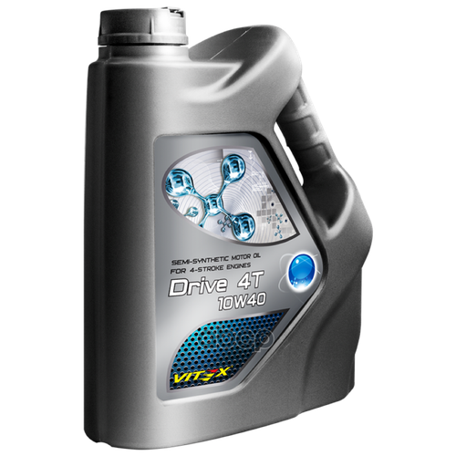 Масло моторное Vitex Drive 4T, для четырехтактных двигателей, полусинтетическое, 10W-40, API SL, JASO MA2, 4л.
