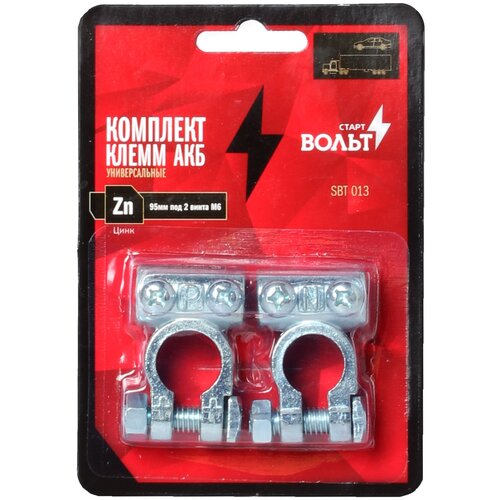 Полный ассортимент клемм АКБ (по материалу, по методу крепления) в блистерной упаковке. Стартвольт - единственный на текущий момент системный поставщик клемм АКБ в России. SBT 013 SBT 013