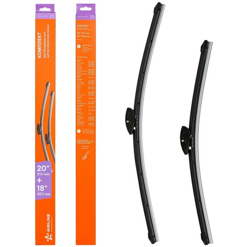 Щетки стеклоочистителя 510/450мм (20"/18") бескаркасные, Civic 95/01, Lancer 95/01, Polo 94/03, RAV4 94/00, 2 шт. 1 адптр AIRLINE