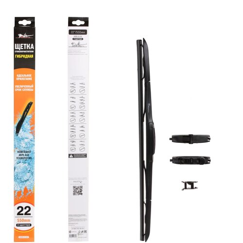 Товарное предложение: Щетка стеклоочистителя 550 мм (22") гибридная, 3 адаптера AIRLINE