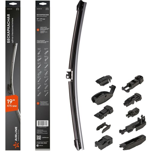 Щетка стеклоочистителя 475 мм (19") бескаркасная, 10 адаптеров AIRLINE