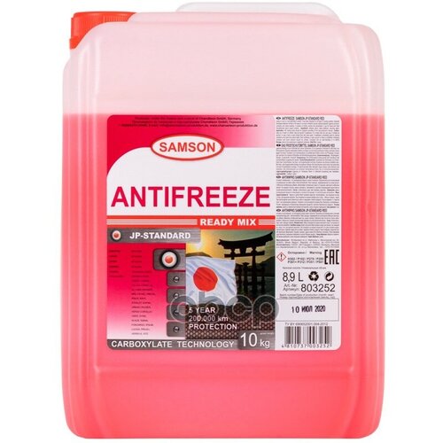 Антифриз Samson Jp-Standard Red, 10 Кг (Красн.) Special Japan&Korea Cars Daihatsu / Lexus / Scion / Subaru / Toyota (4-Runner. auris, Avensis.aygo, Camry, Carina, Celica, Corolla, Iq, Land Cruiser, Mr2, Picnic, Previa, Prius, Rav4, Starlet, Supra, Urban
