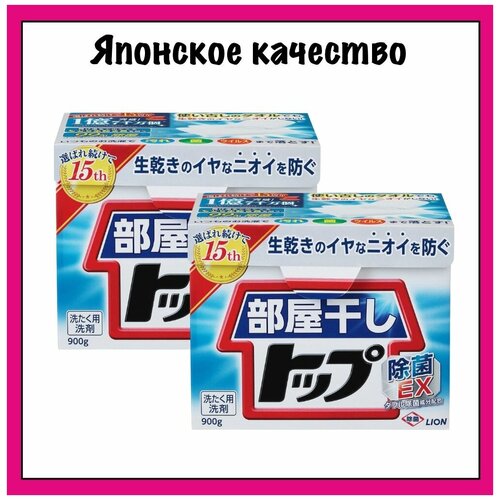 LION Японский стиральный порошок ТОП - сухое белье для сушки белья в помещениях, "Top for Rooms", 900 гр. x 2 шт.